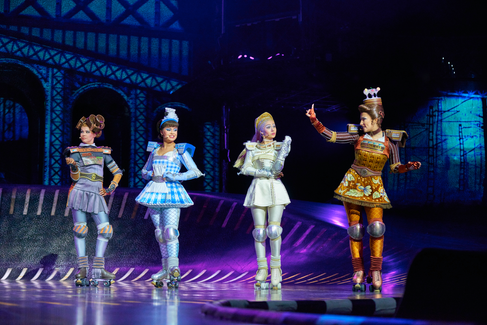 It is a 360-degree show, and the venue features U-shaped tracks or skateways for the roller-skating action on three levels. The show plays with audience in the middle and surrounding these.